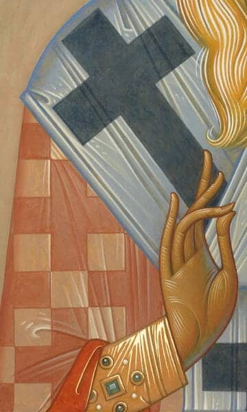 As we can see, we’re not limited to symbolically depicting the Uncreated Light by the use of gold, red, green, or, for that matter, any other color. All colors, after all, are the perception of specific wavelengths of light – pure light made perceptible to the eye. The unseen made sensible. A reminder of how the Formless has taken on form; how the Light of the world has become flesh. Another example of how phenomenal reality is nothing other than a symbol, the Uncreated manifesting and making itself accessible through the kaleidoscope of nature. So, the color blue is only one among many other pictorial means through which the icon painter can convey what ultimately transcends sense perception and conception.